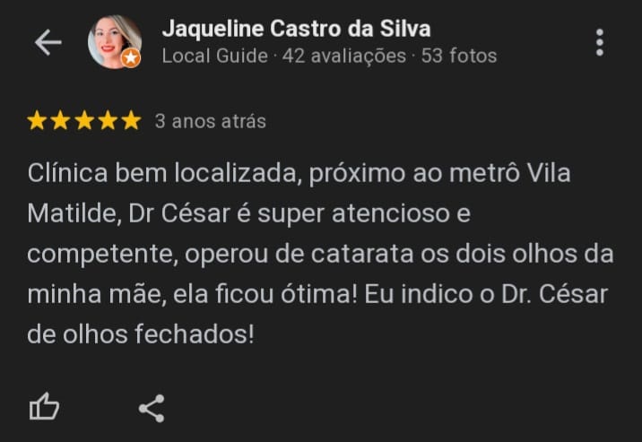 Atuando desde 99 na cidade de São Paulo, a Clínica oftalmológica Dr. César Neto reúne tecnologia e toda a competência e experiência de seu fundador, o doutor oftalmologista Cesar Neto. Desde o início de suas atividades, o principal compromisso da Clínica oftalmológica Dr. César Neto é oferecer soluções de qualidade em saúde ocular por um preço acessível à população. Em todos os anos de atuação, vem se destacando na prestação de serviços de referência como cirurgia de catarata, laser para miopia ou astigmatismo, plástica ocular e medicina de uma forma geral.